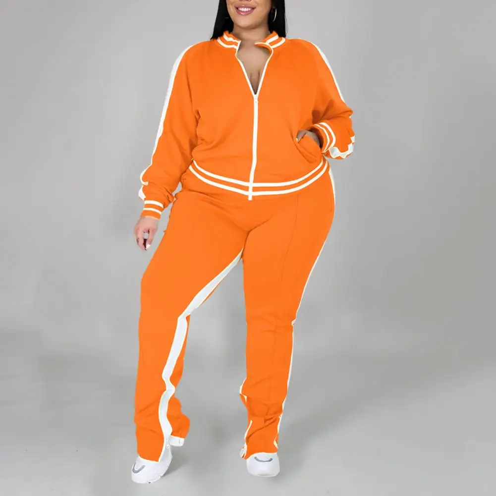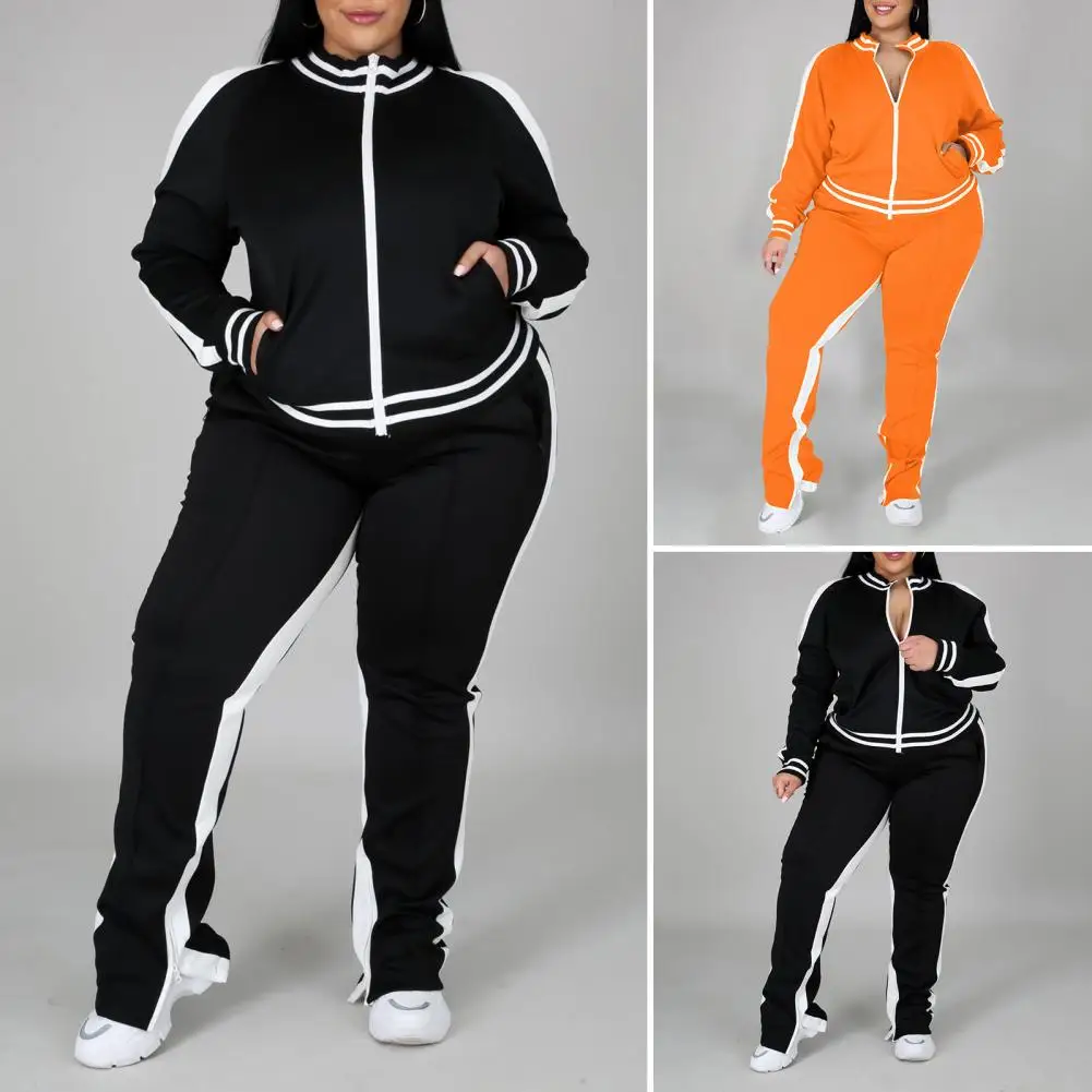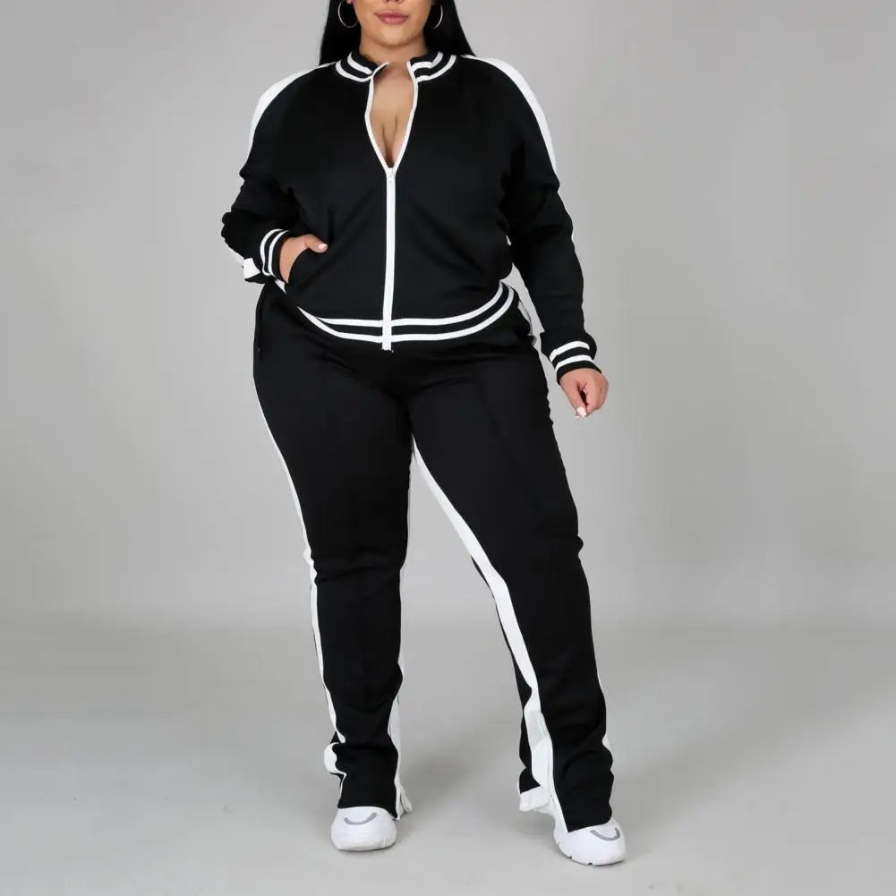 2 Pcs/Set Women Jogging Suit Plus Size Zip-up Long Sleeve Sweatsuit with Trousers Loose Fit Tracksuit Sports Outfit for Joggers